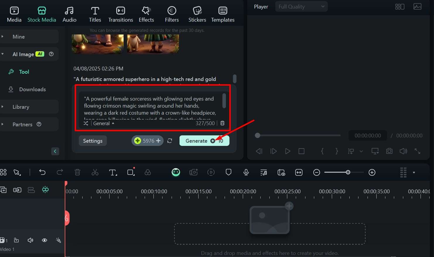 Filmoraはここで明らかな選択肢です。なぜなら、あなたのプロンプトに基づいて生成されたAI画像の無限の創造性と、さまざまなエフェクト、タイトル、フィルターなどの編集機能の実用性を組み合わせているからです。また、AI画像から動画生成機能を使って、自分自身をマーベルキャラクターの1人に変身させることもできます。
