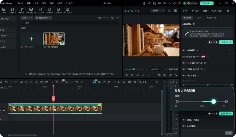 FilmoraのAI機能で動画のフリッカーを修正 — 簡単な手順でプロ並みの仕上がりを実現します。