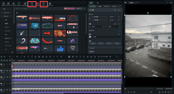 ・[エフェクト][ステッカー]から矢印や番号を追加
